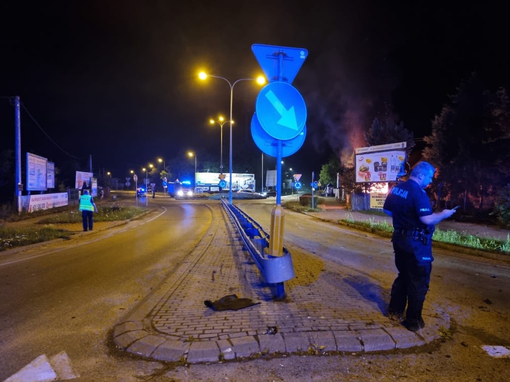 W jej trakcie znalazł się na podwójnym rondzie Pileckiego w Rembelszczyźnie, które próbował pokonać z prędkością ponad 180 km/h, hamując w trakcie do ok. 130 km/h. Jak można się domyślać, manewr przejechania rond z taką prędkością nie powiódł się – złodziej stracił panowanie nad autem, przejechał przez nasyp na środku jednego z nich, w wyniku czego Jeep Cherokee przewrócił się na bok i uderzył w ogrodzenie posesji.