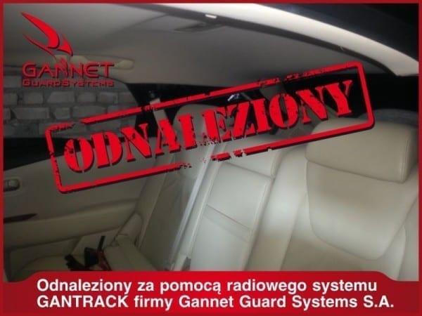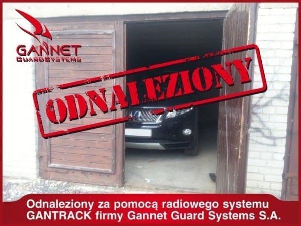 Skradziony Lexus został odnaleziony w przeciągu 1 godz od zgłoszenia kradzieży przez Klienta. Kradzież miała miejsce na terenie dużego miasta w województwie mazowieckim w godzinach porannych. Ekipa GGS przeprowadziła akcje poszukiwawczą bardzo szybko, za pomocą niezawodnej technologii radiowej, dzięki której moduł GanTrack jest najlepszym zabezpieczeniem na rynku.