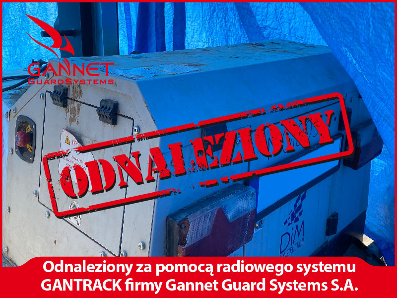 Urządzenie zostało odnalezione w podwarszawskim Pruszkowie w nieco ponad 2 godziny od przyjęcia zgłoszenia dzięki zastosowaniu systemy monitoringu radiowego GanTrack. Sprzęt przekazano policji, która prowadzi dochodzenie w sprawie kradzieży.