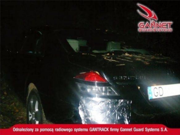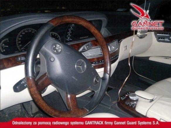 Mercedes klasy S został namierzony na terenie województwa pomorskiego. Informacja dotycząca położenia pojazdu została przekazana Policji z Centurm Alarmowego GGS. Auto było ukryte w lesie, oklejone folią aluminiową oraz dodatkowo, uruchomiona była zagłuszarka GSM/GPS co nie przeszkodziło w lokalizacji skradzionego samochodu.