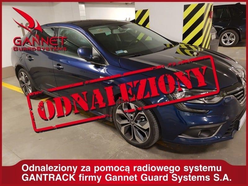 8 listopada w godzinach popołudniowych centrala Gannet Guard Systems otrzymała zgłoszenie o przywłaszczeniu Renault Megane. Samochód został odnaleziony na terenie Warszawy w jednym z podziemnych garaży. Udało się go namierzyć po niespełna dwóch godzinach, dzięki wykorzystaniu systemu GanTrack. Koordynaty miejsca, w którym zaparkowano auto, zostały przekazane policji, a ta zwróciła samochód prawowitemu właścicielowi.