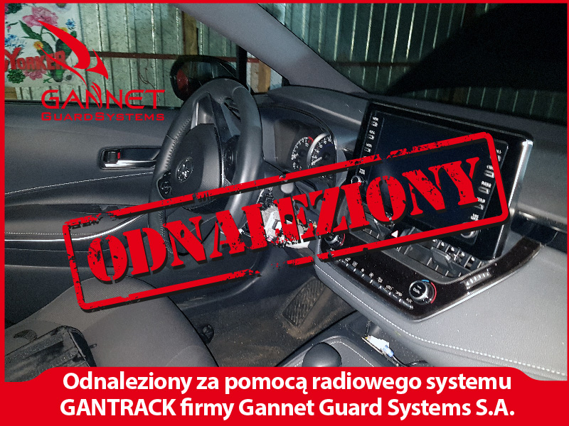 Pozycja poszukiwanej Corolli na bieżąco przekazywana była do nieoznakowanego radiowozu. Po ok. 50 km pościgu załogi policyjne i GGS dojechały do miejscowości, w której auto precyzyjnie namierzono w „dziupli”. Mundurowi wkroczyli na teren ustalonej posesji, gdzie zatrzymali mężczyznę zajmującego się demontażem pojazdów. Właściciel Toyoty został poinformowany o zabezpieczeniu samochodu.
