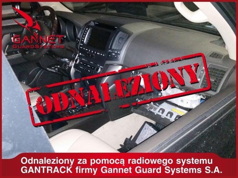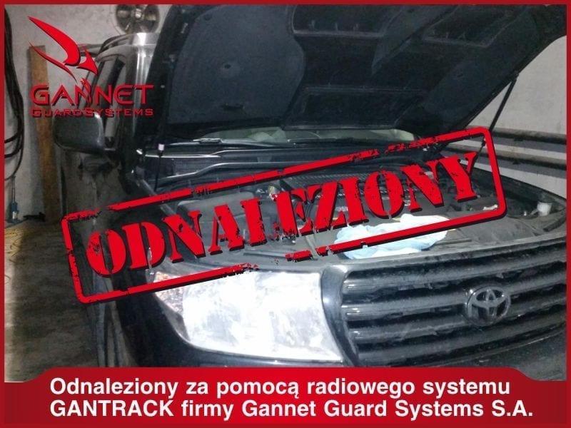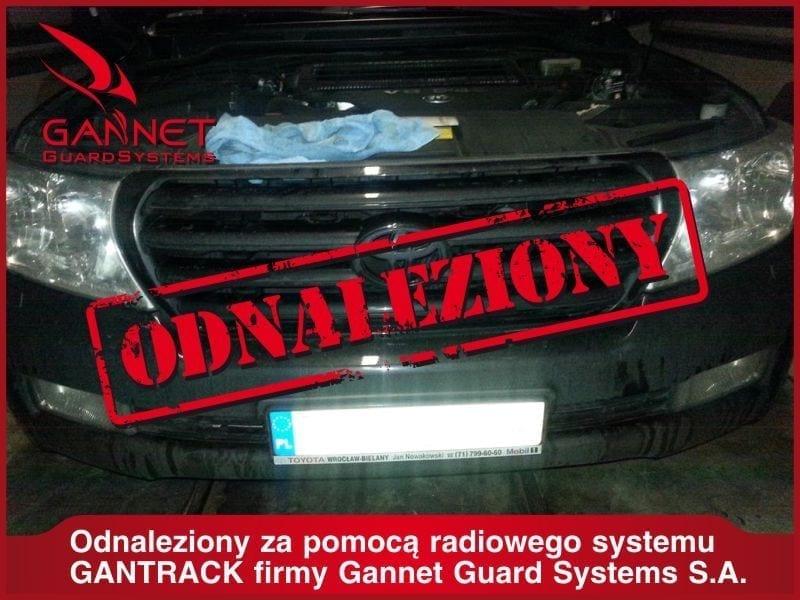 Dzięki ekspresowej reakcji ekipy GGS, z samolotu udało się namierzyć sygnał modułu, którym była zabezpieczona Toyota Land Cruiser skradziona we Wrocławiu. Pomimo działających zagłuszarek system radiowy pracował nadal, przez co udało nam się zlokalizować w Wielkopolsce dziuplę, w której oprócz Toyoty odnaleźliśmy skradzioną temu samemu klientowi Kia Sportage. Na miejscu odnaleziono liczne dowody wskazujące, iż w tym miejscu znikały również takie samochody jak Audi czy BMW.
