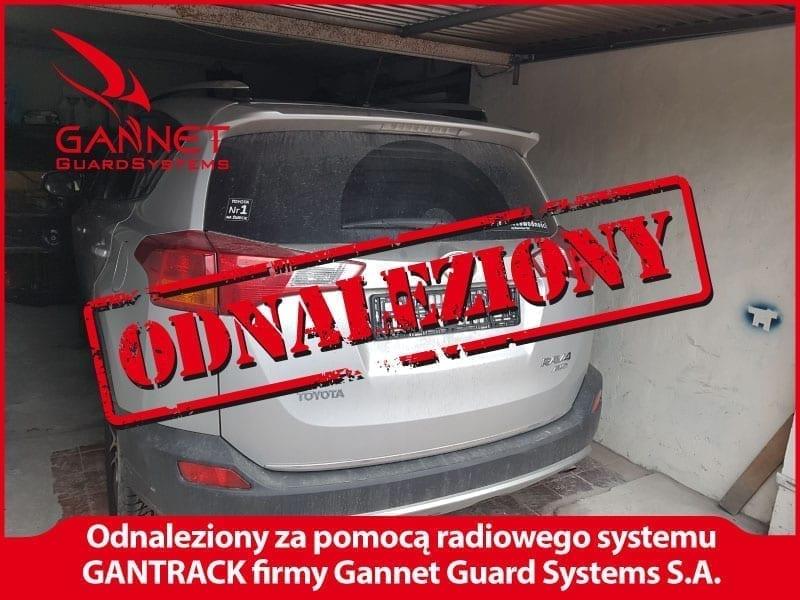 2 marca w godzinach wieczornych Centrala Gannet Guard Systems otrzymała zgłoszenie dotyczące kradzieży Toyoty RAV4. Auto zniknęło z posesji w Nadarzynie. Po kilku godzinach udało się namierzyć sygnał radiowego modułu GanTrack w jednym z garaży na posesji w powiecie wołomińskim. Wszystkie informacje zostały przekazane funkcjonariuszom policji, którzy nad ranem otworzyli garaż i odzyskali skradziony pojazd. Przy okazji znaleziono też części innego japońskiego samochodu.